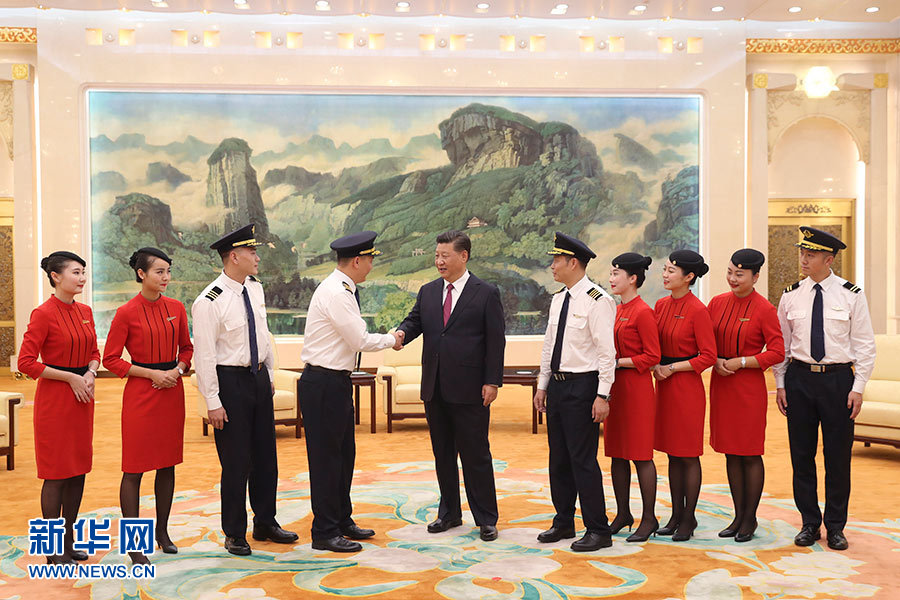 習(xí)近平在會見四川航空“中國民航英雄機(jī)組”全體成員時(shí)強(qiáng)調(diào)