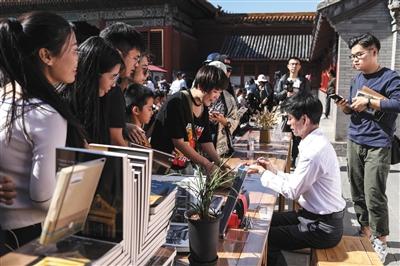 10月2日,故宮鐘表修復(fù)師王津在簽名售書?!段以诠蕦m修文物》熱播后,氣度儒雅的鐘表修復(fù)師王津被網(wǎng)友“晉封”為“故宮男神”。新京報記者 浦峰 攝