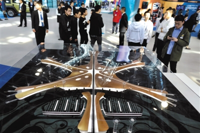 昨日,“雙創(chuàng)周”北京會(huì)場(chǎng),現(xiàn)場(chǎng)展示大興國(guó)際機(jī)場(chǎng)模型。新京報(bào)記者 浦峰 攝