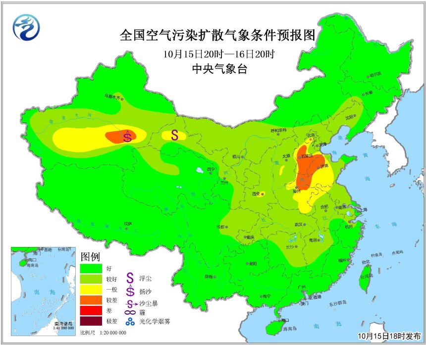 從此次過程的消散時間看來,預計15日夜間至16日凌晨,受華北地區(qū)的降雨天氣影響,北京和河北北部地區(qū)的霧、霾天氣將有所緩解。16日上午,河北北部、北京、天津的霧和霾天氣將得到有效清除,但是河北南部、山東西部、河南北部等地受短時上游污染物傳輸?shù)挠绊?,污染物會有加重的過程。16日夜間至17日,隨著冷空氣繼續(xù)南下,山東西部、河南北部地區(qū)的霧和霾天氣也會有所緩解。此次過程會在17日白天減弱消散。