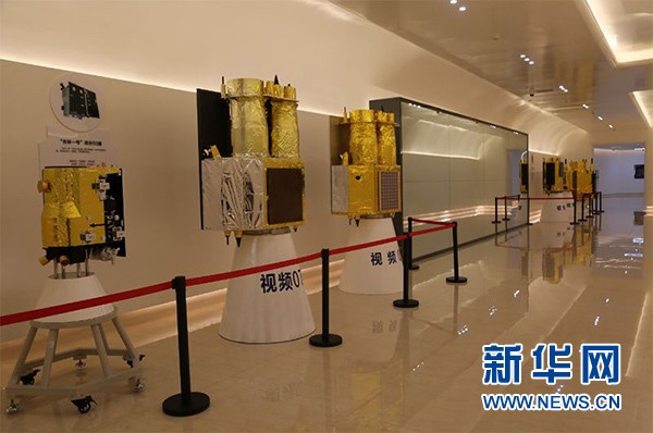 ↑↑在公司大廳顯著位置展示的“吉林一號(hào)”組星發(fā)射狀態(tài)等比模型。