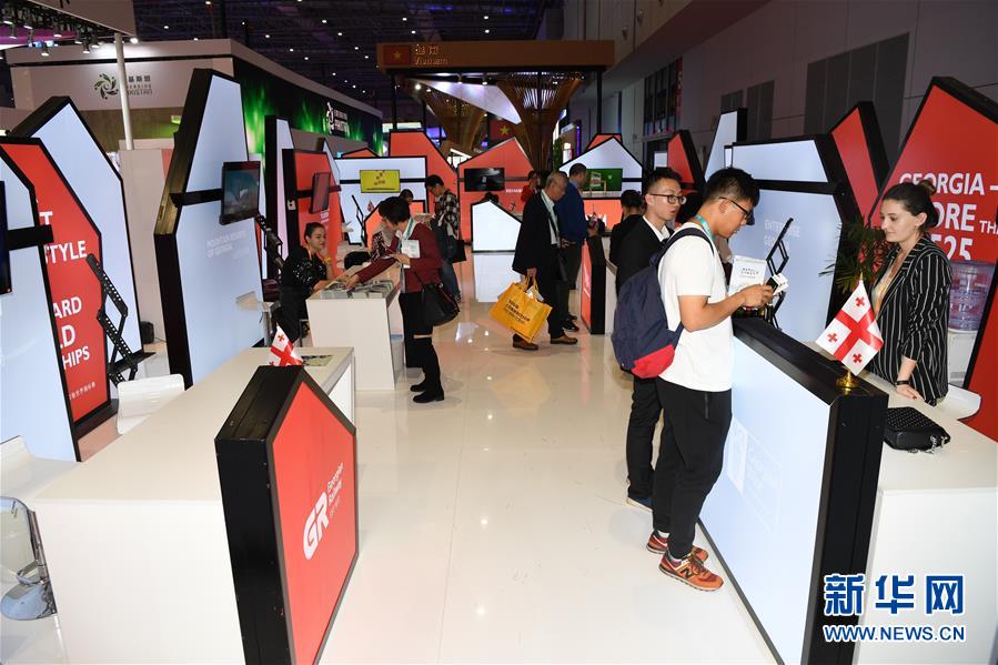 11月6日拍攝的首屆中國國際進口博覽會格魯吉亞展區(qū)。? 新華社記者沙達提攝