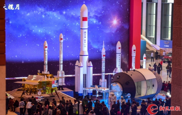 圖說:中國(guó)航天技術(shù)集中展示區(qū)域。新民晚報(bào)記者 孫中欽 攝