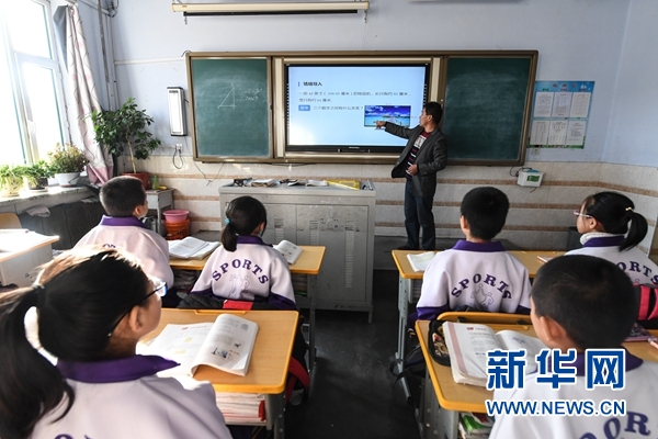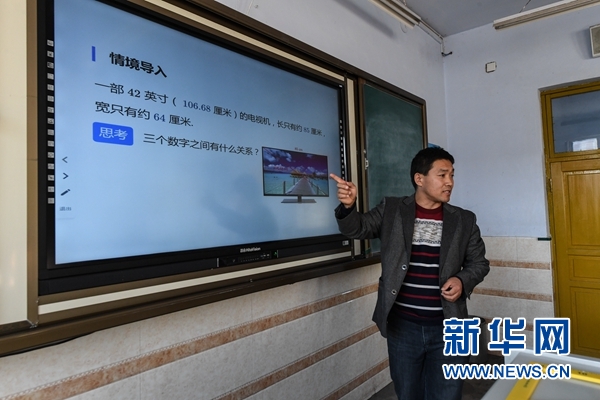 11月30日,在吉林省榆樹市五棵樹鎮(zhèn)中學(xué),教師李玉虹利用多媒體教學(xué)系統(tǒng)給學(xué)生們上數(shù)學(xué)課。 新華社記者 張楠攝
