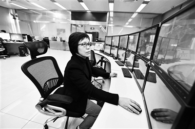 ▲北京市氣象臺首席預(yù)報員郭金蘭正在氣象會商室查看氣象數(shù)據(jù)