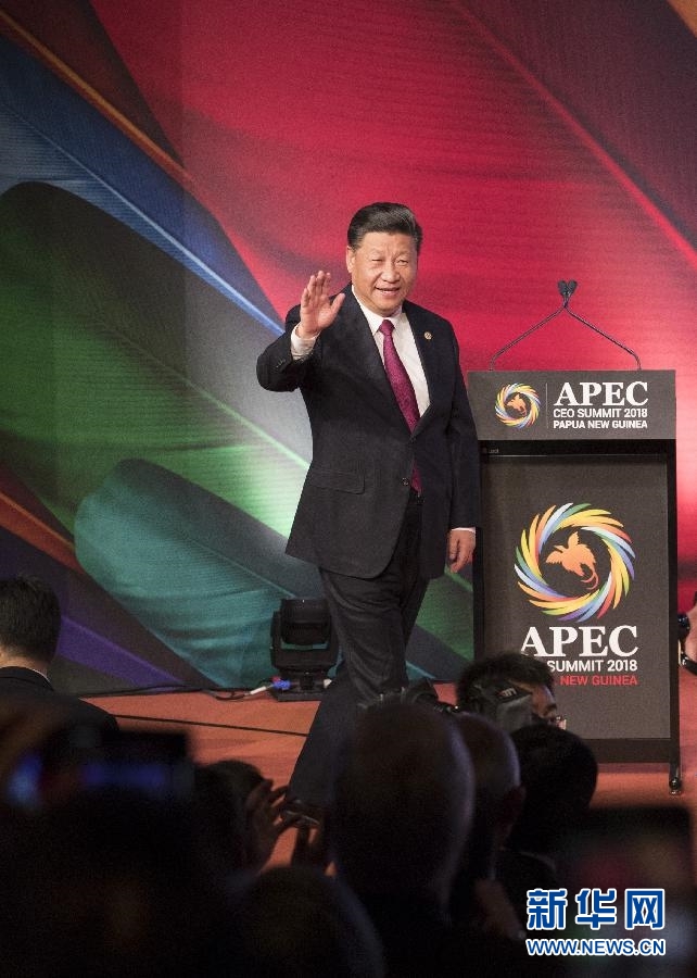 ??? 11月17日,習(xí)近平應(yīng)邀出席在巴布亞新幾內(nèi)亞莫爾茲比港舉行的亞太經(jīng)合組織工商領(lǐng)導(dǎo)人峰會并發(fā)表題為《同舟共濟創(chuàng)造美好未來》的主旨演講。這是習(xí)近平步入會場。新華社記者 黃敬文 攝
