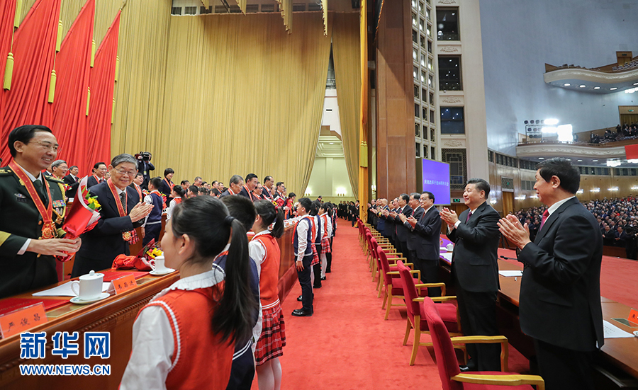 12月18日,慶祝改革開放40周年大會在北京人民大會堂隆重舉行。中共中央總書記、國家主席、中央軍委主席習近平在大會上發(fā)表重要講話。這是習近平等為獲得中國改革友誼獎章人員代表頒獎。 新華社記者 鞠鵬 攝