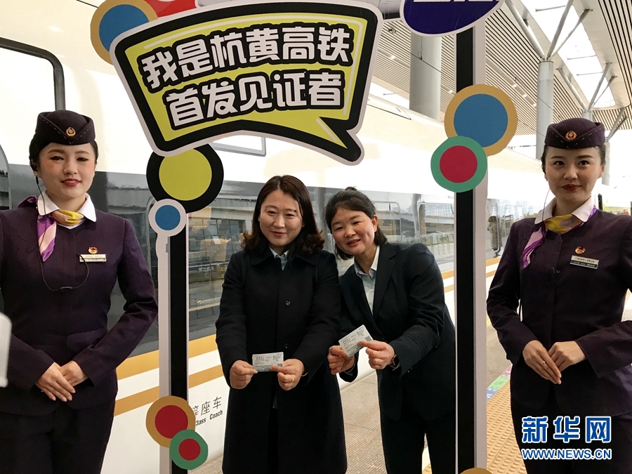 12月25日上午8點34分,從杭州發(fā)往黃山的首發(fā)車D9551發(fā)出,旅客拍照留念。新華網 韓家慧 攝
