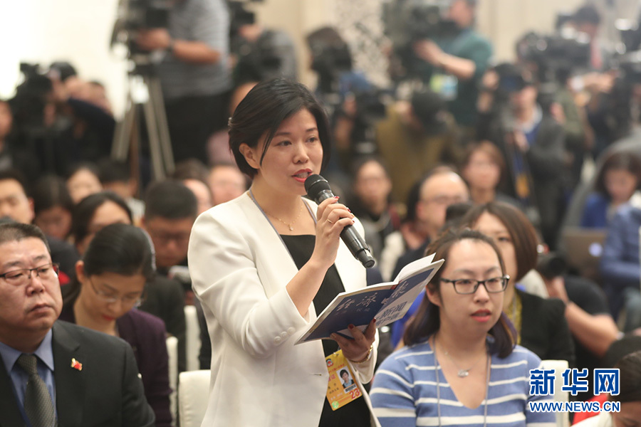 全國政協(xié)十三屆一次會議新聞發(fā)布會3月2日16:30在人民大會堂一層新聞發(fā)布廳召開,大會新聞發(fā)言人王國慶向中外媒體介紹本次大會有關情況并回答記者提問。圖為經(jīng)濟日報記者提問。新華網(wǎng)/中國政府網(wǎng) 曲植 攝?