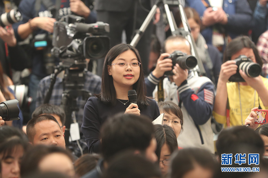全國政協(xié)十三屆一次會議新聞發(fā)布會3月2日16:30在人民大會堂一層新聞發(fā)布廳召開,大會新聞發(fā)言人王國慶向中外媒體介紹本次大會有關(guān)情況并回答記者提問。圖為光明日報(bào)記者提問。新華網(wǎng)/中國政府網(wǎng) 曲植 攝