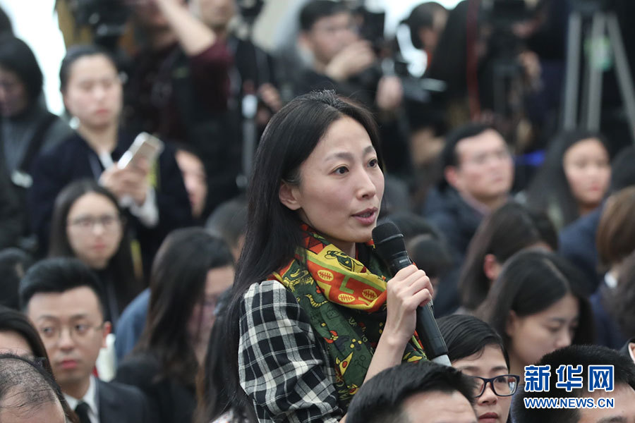 全國政協(xié)十三屆一次會議新聞發(fā)布會3月2日16:30在人民大會堂一層新聞發(fā)布廳召開,大會新聞發(fā)言人王國慶向中外媒體介紹本次大會有關情況并回答記者提問。圖為香港文匯報、大公報記者提問。新華社記者 邢廣利 攝