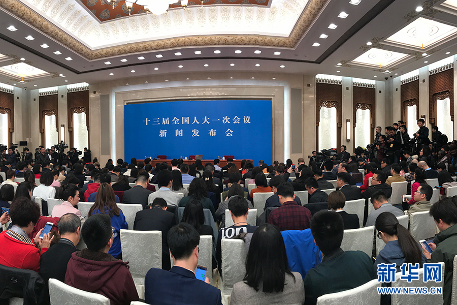 3月4日,十三屆全國(guó)人大一次會(huì)議在人民大會(huì)堂新聞發(fā)布廳舉行新聞發(fā)布會(huì),由大會(huì)發(fā)言人張業(yè)遂就大會(huì)議程和人大工作相關(guān)的問(wèn)題回答中外記者的提問(wèn)。圖為新聞發(fā)布會(huì)現(xiàn)場(chǎng)。新華網(wǎng)/中國(guó)政府網(wǎng) 陳杰 攝