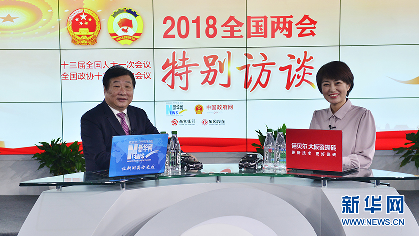3月5日,全國人大代表、山東重工集團董事長、濰柴集團董事長譚旭光(左)做客新華網(wǎng)2018全國兩會特別訪談。新華網(wǎng) 李相博攝