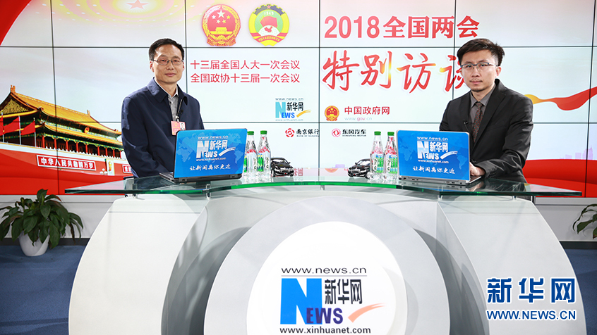 3月6日,全國人大代表、湖北省荊州市市長崔永輝(左)做客新華網(wǎng)2018全國兩會特別訪談。新華網(wǎng) 楊锘攝