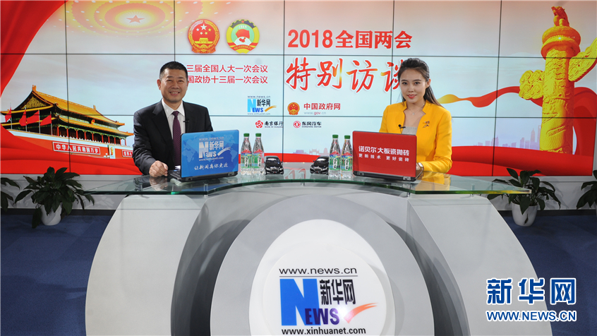 3月9日,全國人大代表、飛鶴乳業(yè)董事長冷友斌(左)做客新華網(wǎng)2018全國兩會(huì)特別訪談。新華網(wǎng) 郭小天攝