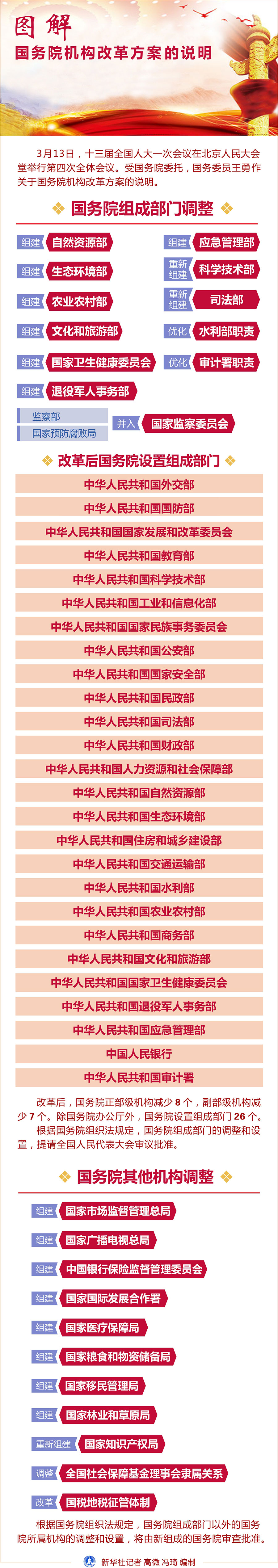 圖表:圖解國務(wù)院機(jī)構(gòu)改革方案的說明 新華社記者 馮琦 高微 編制