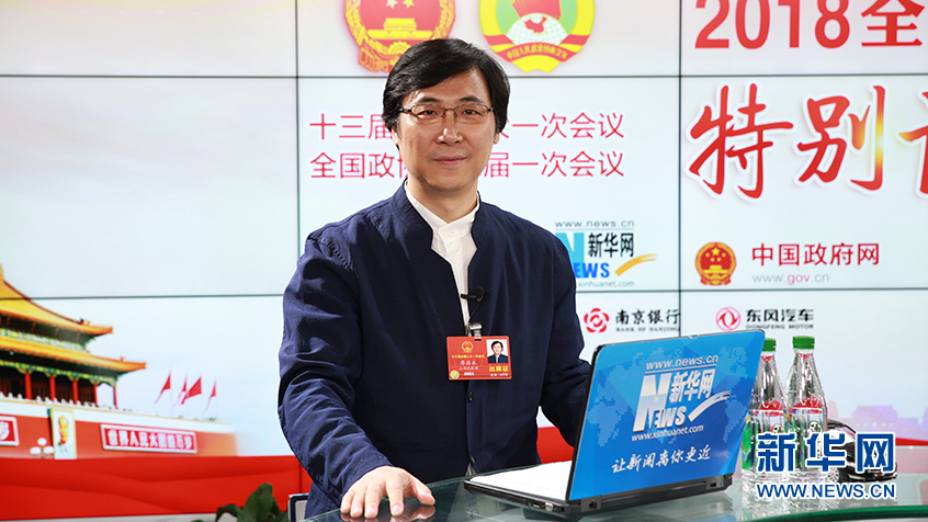 圖為14日,全國人大代表,著名男中音歌唱家、中國音樂家協會副主席、上海音樂學院副院長廖昌永做客新華網2018全國兩會特別訪談。新華網 楊锘攝