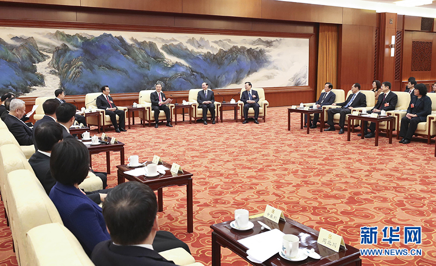 汪洋看望參加全國政協(xié)十三屆一次會議報道的新聞工作者