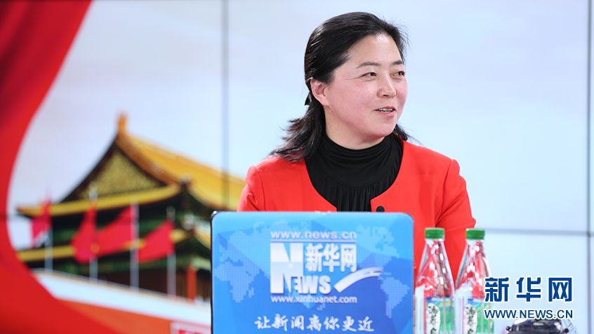 圖為全國(guó)人大代表,江蘇省盱眙縣天泉湖鎮(zhèn)杜山村業(yè)盛鮮果專(zhuān)業(yè)合作社理事長(zhǎng)、盱眙石馬山生態(tài)農(nóng)業(yè)開(kāi)發(fā)公司經(jīng)理李葉紅做客新華網(wǎng)2018全國(guó)兩會(huì)特別訪談。新華網(wǎng) 陳延特?cái)z
