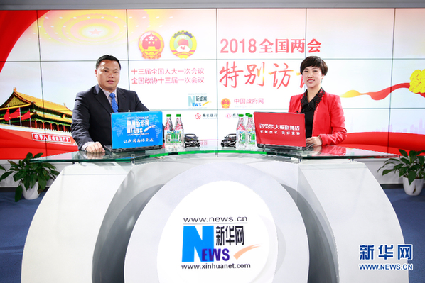 圖為全國人大代表、河南省平頂山市寶豐縣大黃村黨支部書記馬豹子做客新華網(wǎng)2018全國兩會特別訪談 新華網(wǎng) 范作言 攝