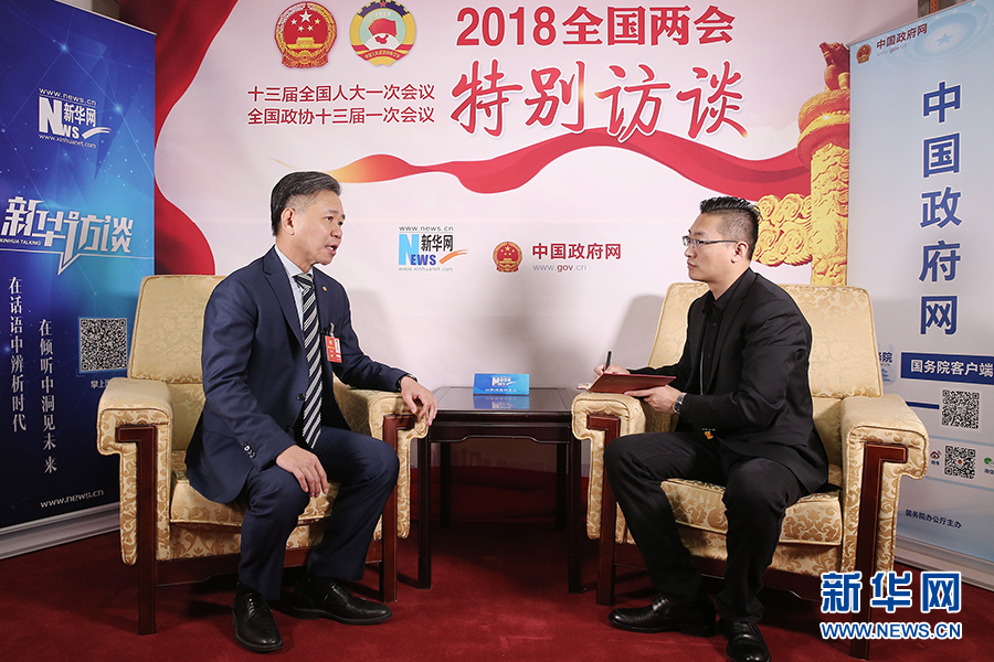 王文祥在2018兩會期間接受新華網(wǎng)記者專訪。新華網(wǎng)/中國政府網(wǎng) 陳杰攝