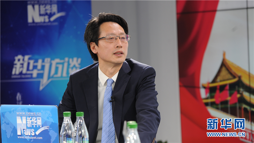 ??? 圖為中國(guó)宏觀經(jīng)濟(jì)研究院常務(wù)副院長(zhǎng)王昌林做客新華網(wǎng)2018全國(guó)兩會(huì)特別訪談“新跨越兩會(huì)專家講” 新華網(wǎng) 張斌攝