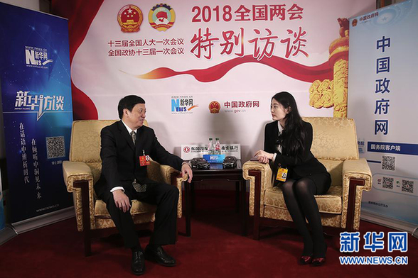 圖為全國人大代表、福州市市長尤猛軍做客新華網(wǎng)2018全國兩會特別訪談 新華網(wǎng) 王翰林?攝