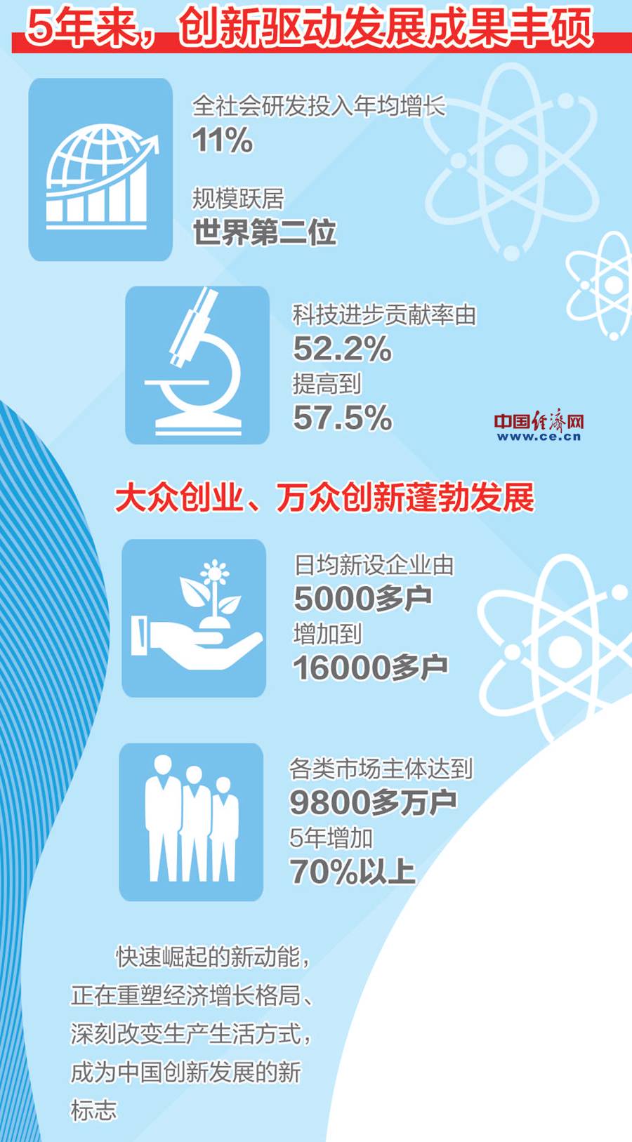這5年,創(chuàng)新驅(qū)動(dòng)發(fā)展成果豐碩。全社會(huì)研發(fā)投入年均增長(zhǎng)11%,規(guī)模躍居世界第二位;科技進(jìn)步貢獻(xiàn)率提高了5.3個(gè)百分點(diǎn);載人航天、深海探測(cè)、量子通信、大飛機(jī)等重大創(chuàng)新成果不斷涌現(xiàn);高鐵網(wǎng)絡(luò)、電子商務(wù)、移動(dòng)支付、共享經(jīng)濟(jì)等引領(lǐng)世界潮流……這一切,都源于我們實(shí)施的創(chuàng)新驅(qū)動(dòng)發(fā)展戰(zhàn)略。在今年兩會(huì)上,代表委員圍繞“創(chuàng)新”這個(gè)關(guān)鍵詞,有講不完的話(huà)題。