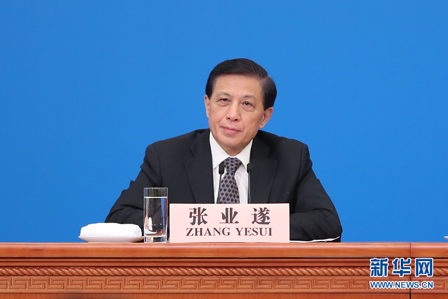 3月20日上午,十三屆全國(guó)人大一次會(huì)議閉幕后,國(guó)務(wù)院總理李克強(qiáng)在人民大會(huì)堂三樓金色大廳會(huì)見采訪十三屆全國(guó)人大一次會(huì)議的中外記者并回答記者提出的問題。圖為大會(huì)發(fā)言人張業(yè)遂。新華網(wǎng)/中國(guó)政府網(wǎng) 翟子赫 攝