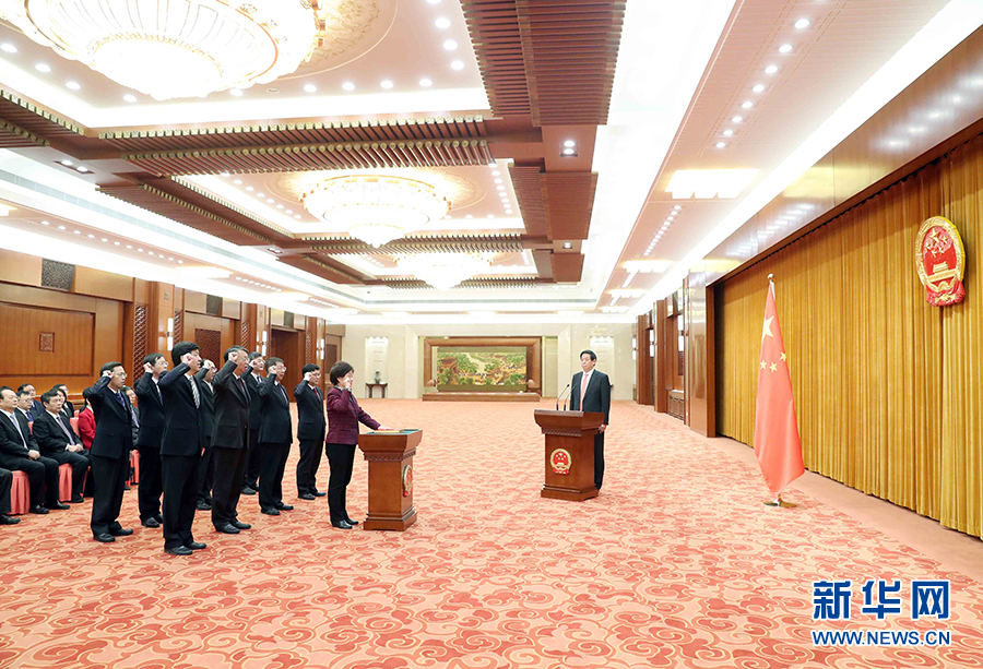 剛剛閉幕的十三屆全國人大常委會第一次會議任命了全國人大常委會副秘書長、預(yù)算工作委員會主任、第四任香港特別行政區(qū)基本法委員會主任和第四任澳門特別行政區(qū)基本法委員會主任。根據(jù)全國人大常委會關(guān)于實行憲法宣誓制度的決定,上述人員依法進(jìn)行憲法宣誓。