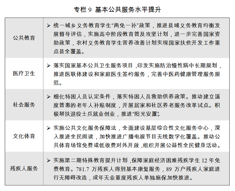 (九)著力保障和改善民生,人民生活水平進(jìn)一步提升。堅(jiān)持以人民為中心的發(fā)展思想,民生領(lǐng)域投入力度持續(xù)加大。