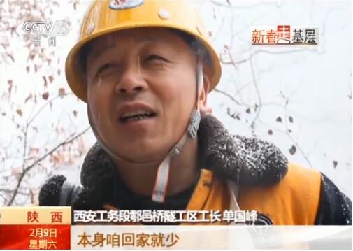 西安工務段漢中橋隧車間鄠邑橋隧工區(qū)工長 單國峰:我給她說,現在年齡大了,爬山就是個鍛煉,哈哈。那你咋說,你敢跟她說,她擔心的不行,盡量不讓家里人擔心,本身咱回家就少。