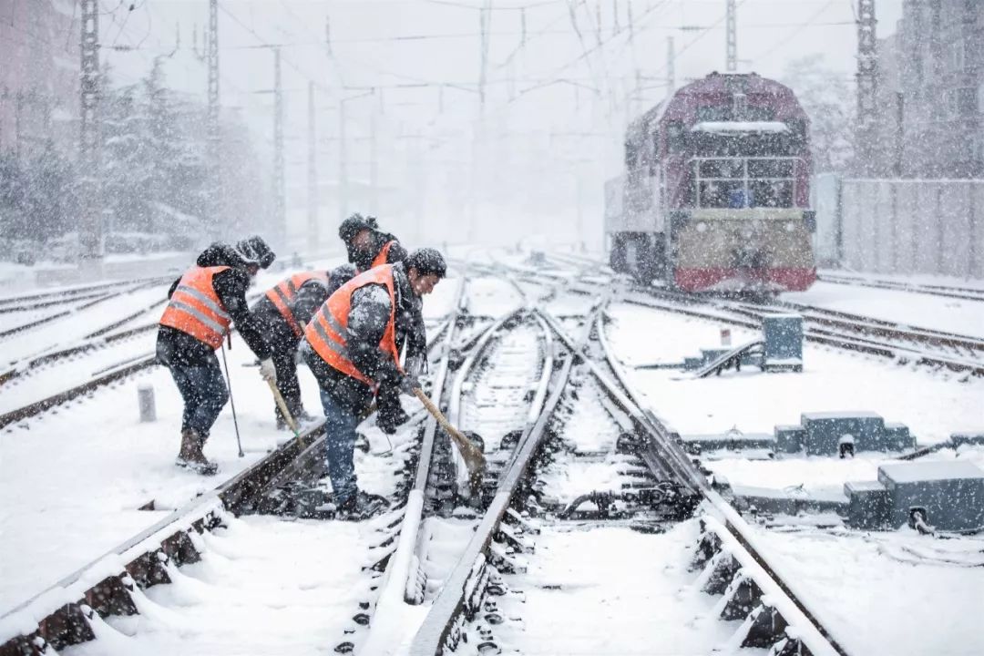 2019-02-02,遼寧省大連市。鐵路人清掃道岔,保障春運(yùn)期間旅客乘坐的列車安全、正點(diǎn)。作者:曹哲爽