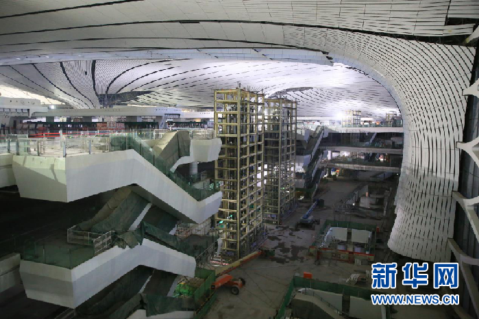 圖片說明:大興國際機場在春節(jié)期間從未停工,工人們熱火朝天地工作,以實現(xiàn)6月30日竣工的目標。攝影:新華網(wǎng)錢春弦