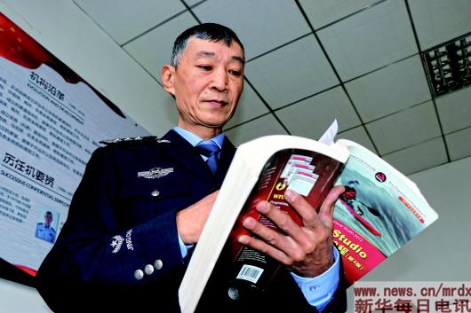 ▲陳昆平查閱軟件系統(tǒng)開(kāi)發(fā)的書(shū)籍。(當(dāng)?shù)毓矙C(jī)關(guān)供圖)
