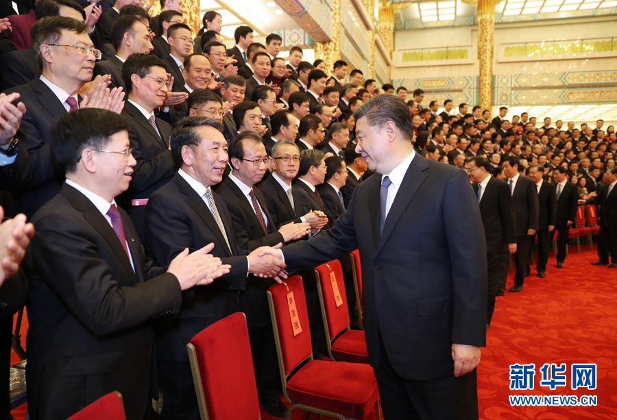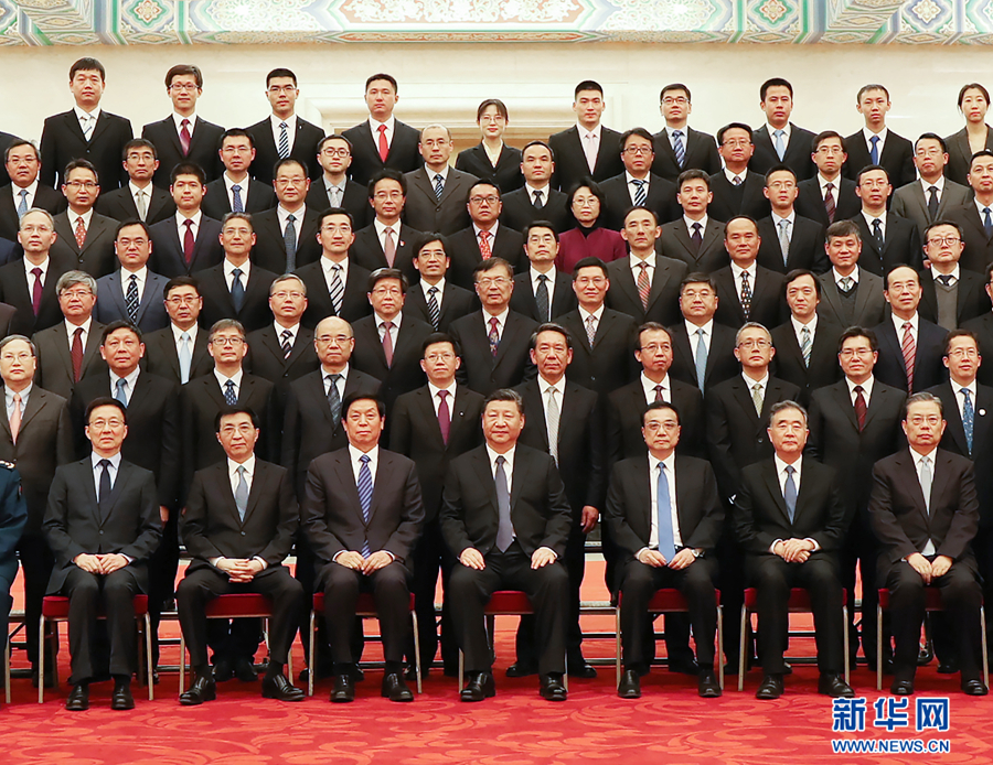 2月20日,黨和國家領(lǐng)導(dǎo)人習(xí)近平、李克強(qiáng)、栗戰(zhàn)書、汪洋、王滬寧、趙樂際、韓正等在北京人民大會(huì)堂會(huì)見探月工程嫦娥四號(hào)任務(wù)參研參試人員代表。 新華社記者鞠鵬攝