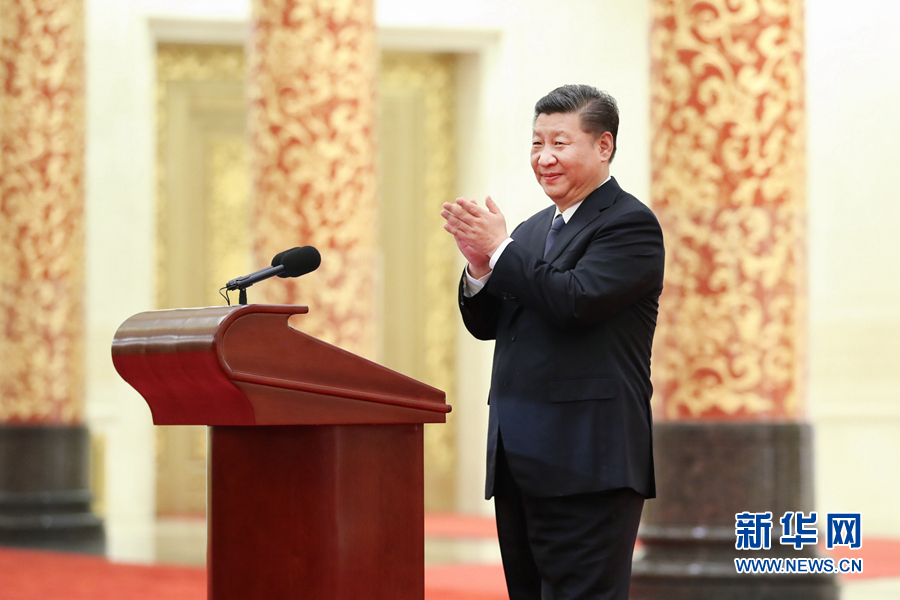 2月20日,黨和國家領(lǐng)導(dǎo)人習(xí)近平、李克強(qiáng)、栗戰(zhàn)書、汪洋、王滬寧、趙樂際、韓正等在北京人民大會(huì)堂會(huì)見探月工程嫦娥四號(hào)任務(wù)參研參試人員代表。這是習(xí)近平發(fā)表重要講話。 新華社記者鞠鵬攝