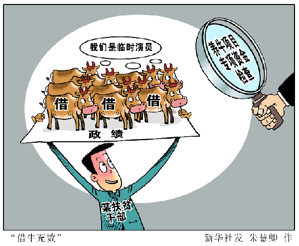 為應(yīng)對國務(wù)院扶貧辦養(yǎng)牛項目專項資金檢查,居然想出臨時借用百余頭牛放入牛圈,以營造養(yǎng)牛項目“紅火”的主意。吉林省紀委近日通報一起借牛假冒政績的典型問題,相關(guān)責(zé)任人受到嚴肅查處問責(zé)?!敖枧3鋽?shù)”事件敲響警鐘:脫貧攻堅越到最后時刻越要響鼓重錘,決不能搞急功近利、虛假政績的東西。