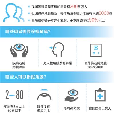我國等待角膜移植的患者有200多萬人,但因供體角膜缺乏,每年角膜移植手術僅有不到8000例