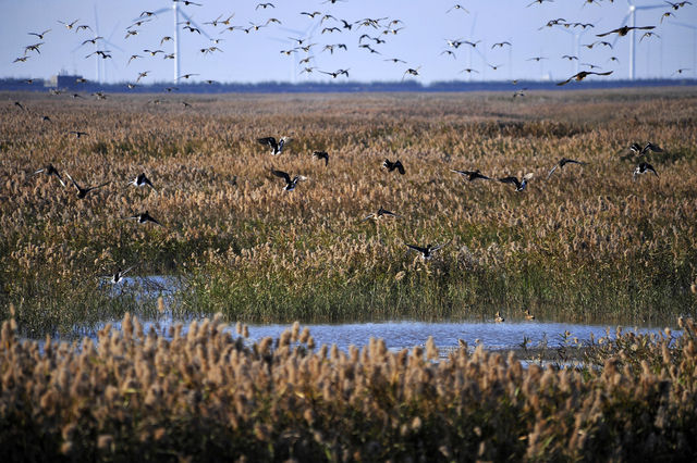 這組照片拍攝于上海著名的崇明東灘濕地,當(dāng)時(shí)正值初冬時(shí)節(jié)。曲水彎環(huán)的蘆葦叢中,成群結(jié)隊(duì)的越冬候鳥(niǎo)時(shí)而悠閑覓食,時(shí)而群鳥(niǎo)歡飛,譜寫(xiě)了一曲美妙的自然樂(lè)章。
