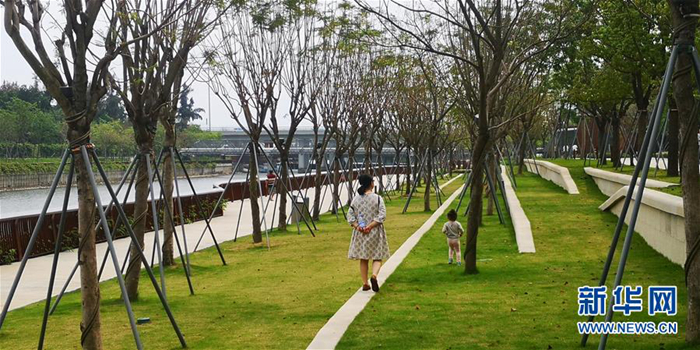 市民在深圳市南山區(qū)大沙河生態(tài)長(zhǎng)廊散步(4月11日攝)。新華社記者 白瑜 攝