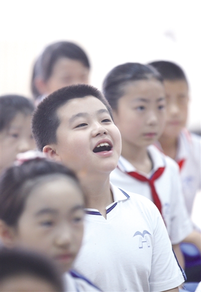 北京市育鴻中學(xué)組織中小學(xué)生收看太空授課。影像中國(guó)