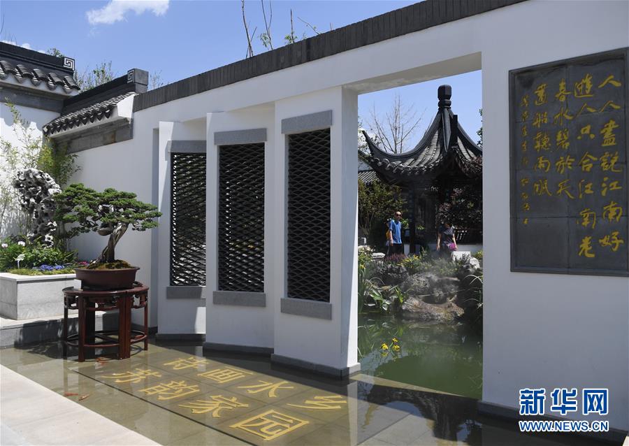 6月2日,游客在江蘇園游覽。當(dāng)日,2019年中國北京世界園藝博覽會“江蘇日”活動在北京世園會園區(qū)舉行。新華社記者 張晨霖 攝