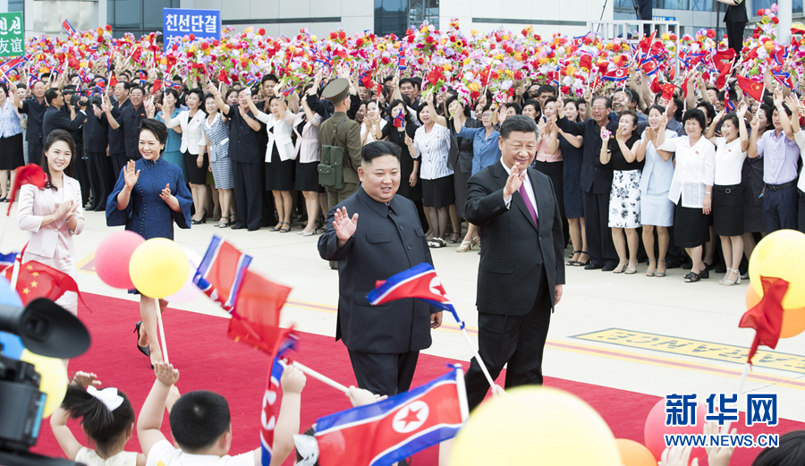 當(dāng)?shù)貢r間下午3時許,在朝鮮民眾夾道歡送中,習(xí)近平和彭麗媛抵達(dá)機(jī)場,金正恩夫婦在下車處熱情迎接。朝鮮各界群眾在機(jī)場熱烈歡送,習(xí)近平向他們揮手致意。軍樂隊奏中朝兩國國歌,習(xí)近平在金正恩陪同下檢閱了朝鮮人民軍三軍儀仗隊。朝鮮少年兒童向習(xí)近平夫婦獻(xiàn)花。習(xí)近平同朝方前來送行的高級官員一一握手告別。在專機(jī)舷梯旁,習(xí)近平同金正恩緊緊握手話別。習(xí)近平夫婦邁上舷梯,在機(jī)艙門口轉(zhuǎn)身,向金正恩夫婦揮手告別。