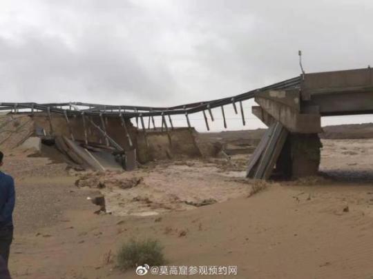 此前,通往敦煌莫高窟窟區(qū)的道路被沖毀