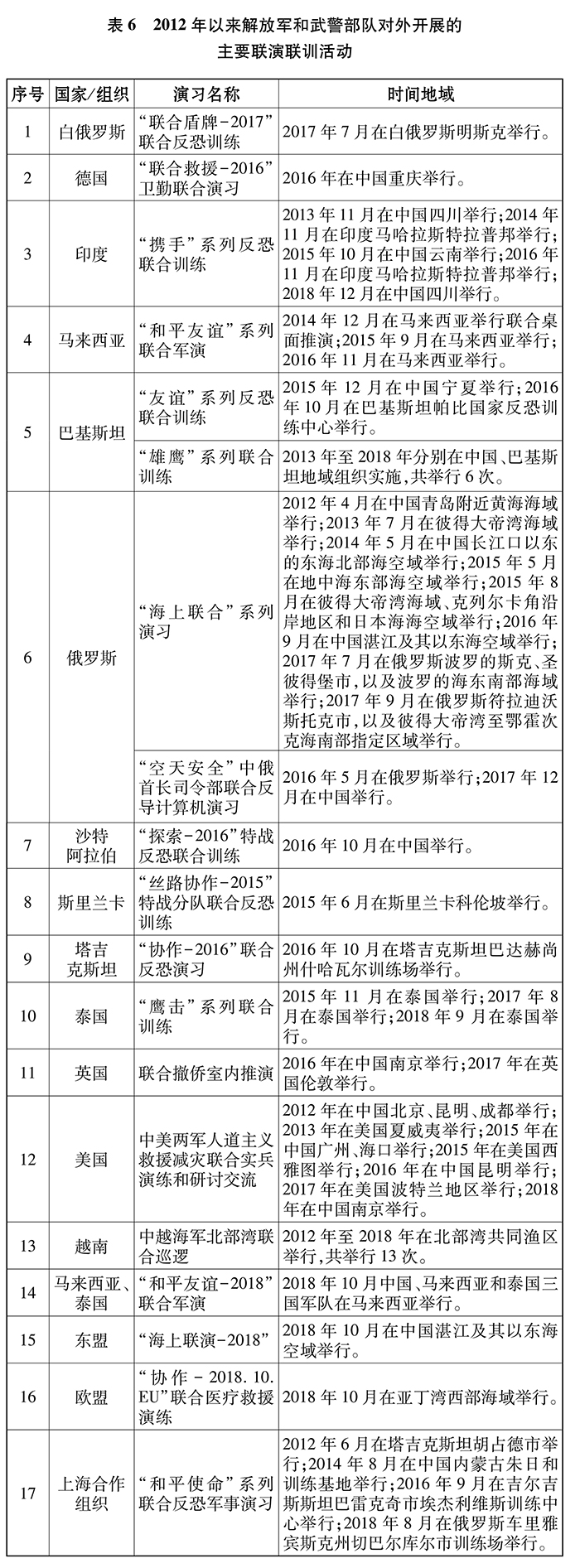 中國軍隊(duì)堅(jiān)持互信互惠、合作共贏的原則,同世界各國軍隊(duì)開展務(wù)實(shí)交流合作。2012年以來,中國同30多個(gè)國家舉行百余次聯(lián)合演習(xí)與訓(xùn)練,演練內(nèi)容從非傳統(tǒng)安全領(lǐng)域發(fā)展到傳統(tǒng)安全領(lǐng)域,演練地域從中國周邊延伸至遠(yuǎn)海,參演力量從以陸軍為主拓展至陸??斩嘬姳N。中國軍隊(duì)積極組織人才培養(yǎng)交流合作,2012年以來,向50多個(gè)國家派出軍事留學(xué)生1700余名,20余所軍隊(duì)院校分別同40多個(gè)國家的院校建立和保持了校際交流關(guān)系,共接納130多個(gè)國家的上萬名軍事人員到中國軍隊(duì)院校學(xué)習(xí)。