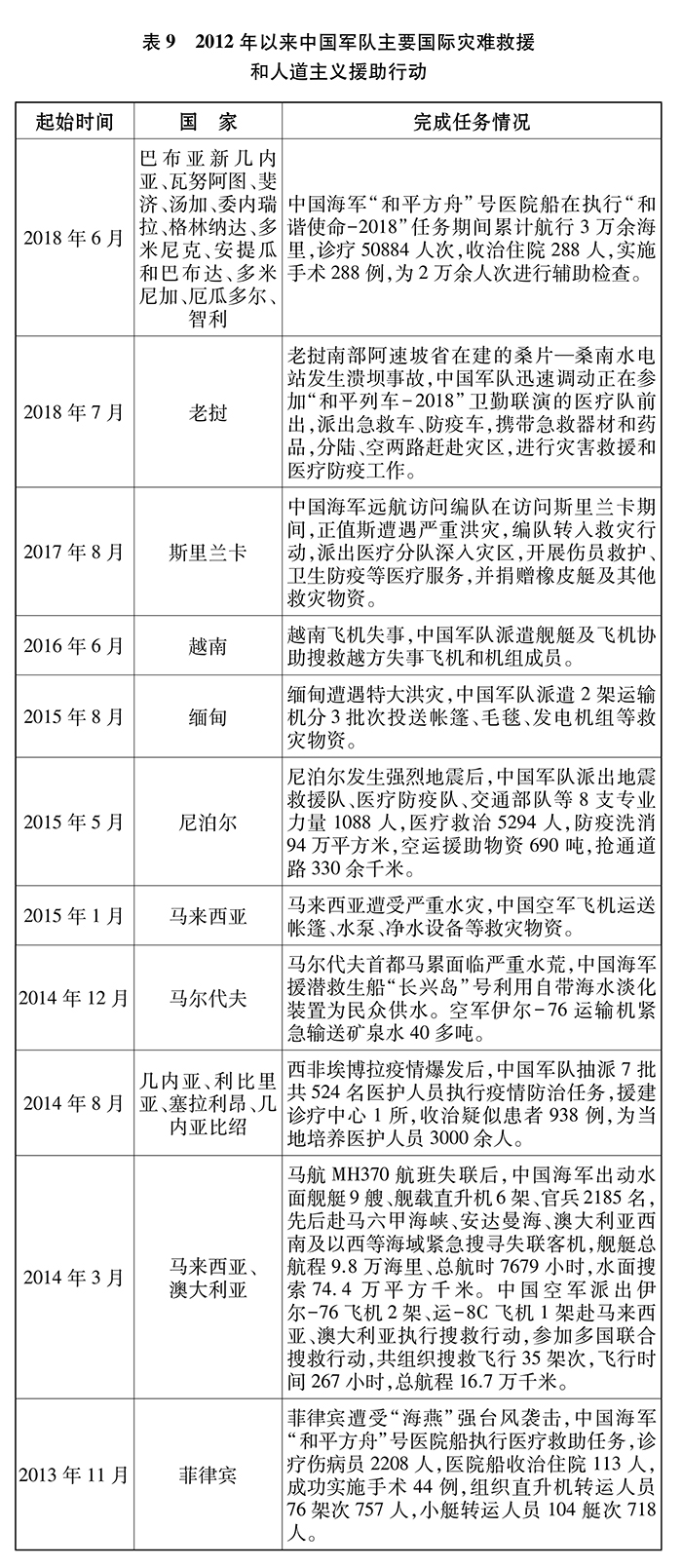 中國軍隊(duì)積極參加國際災(zāi)難救援和人道主義援助,派遣專業(yè)救援力量赴受災(zāi)國救援減災(zāi),提供救援物資和醫(yī)療救助,加強(qiáng)救援減災(zāi)國際交流。2012年以來,組織或參加馬航MH370失聯(lián)航班搜救、菲律賓“海燕”臺風(fēng)救援、抗擊西非埃博拉疫情、馬爾代夫水荒救援、尼泊爾抗震救災(zāi)、老撾水災(zāi)潰壩救援等多項(xiàng)行動。中國海軍“和平方舟”號醫(yī)院船服役10年來,執(zhí)行7次“和諧使命”任務(wù),共訪問43個(gè)國家,為到訪國民眾提供醫(yī)療服務(wù),組織醫(yī)學(xué)交流,惠及民眾23萬余人次。
