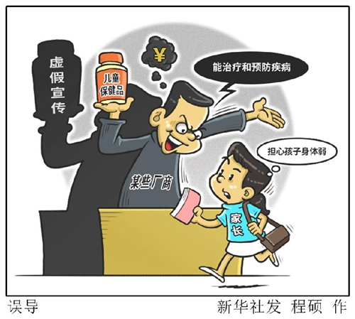 “用于治療缺鋅引起的營養(yǎng)不良、兒童生長發(fā)育遲緩”“用于預(yù)防和治療因維生素和礦物質(zhì)缺乏引起的各種疾病”“用于治療因缺鈣引起的疾病”……這樣宣稱有治療或預(yù)防作用的兒童保健品比比皆是。一些家長告訴記者,總是擔(dān)心孩子身體弱,看到這樣的廣告就想試試。