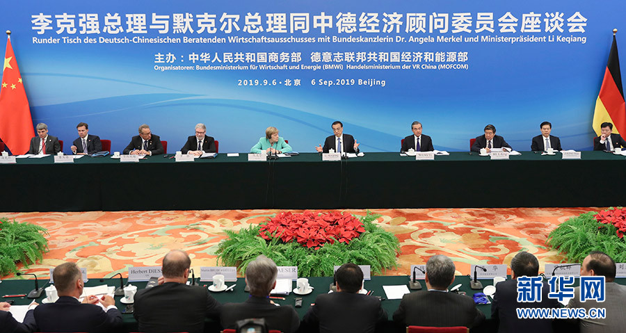 9月6日,國務(wù)院總理李克強(qiáng)在北京人民大會(huì)堂與德國總理默克爾共同出席中德經(jīng)濟(jì)顧問委員會(huì)座談會(huì),并同與會(huì)代表交流。 新華社記者 丁海濤 攝