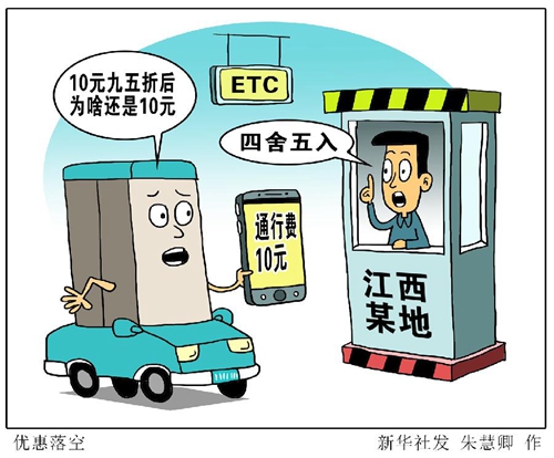 6日上午,國(guó)務(wù)院第七督查組驅(qū)車(chē)從南昌市出發(fā),來(lái)到70余公里外的共青城市。當(dāng)車(chē)駛出ETC專用收費(fèi)通道時(shí),電子屏上顯示的收費(fèi)金額是29元。收費(fèi)站工作人員說(shuō),這段路程不走ETC通道通行費(fèi)是30元。督查人員計(jì)算,30元打完九五折后應(yīng)收28.5元,但被系統(tǒng)“四舍五入”收了29元。隨后,督查組又從共青城市前往德安縣,原價(jià)10元的通行費(fèi)ETC折后依然收費(fèi)10元,沒(méi)有享受到任何優(yōu)惠。